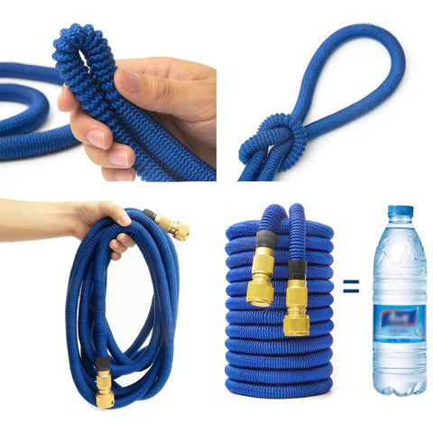 - Expansión sin esfuerzo: La manguera se expande mágicamente hasta 3 veces su tamaño original cuando fluye el agua, proporcionando un mayor alcance para sus tareas de limpieza y riego del jardín.